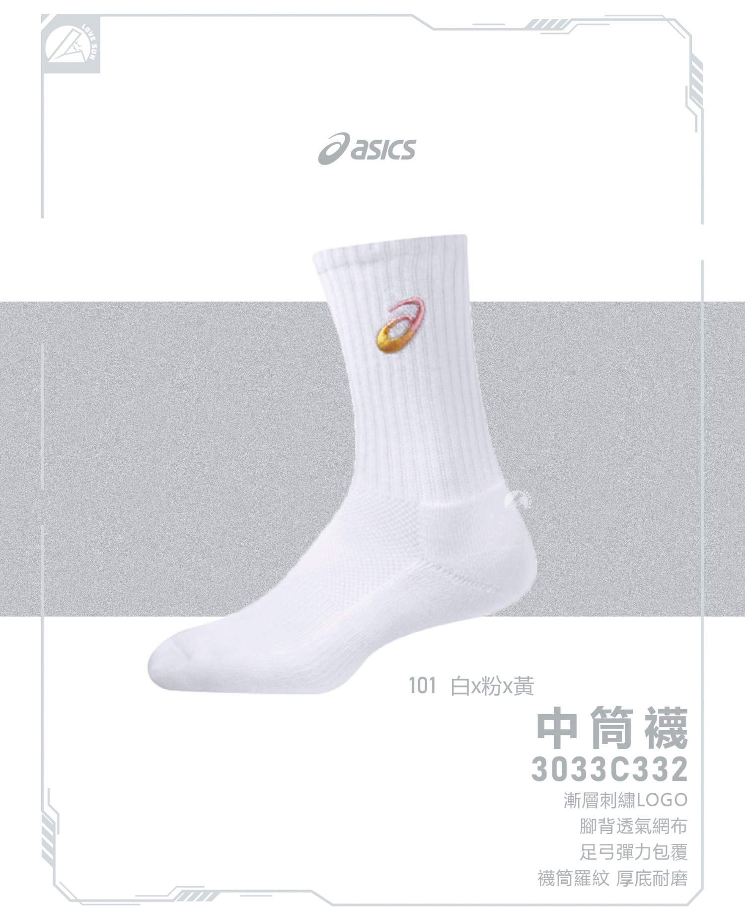 亞瑟士 中筒襪 3033C332